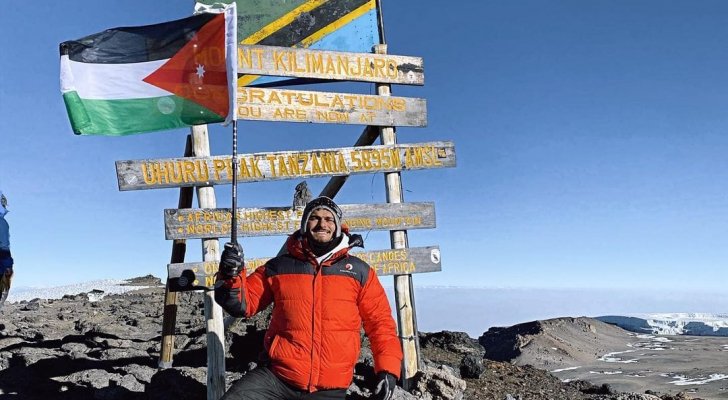 حرير _ وصل الناشط على مواقع التواصل الاجتماعي محمد الصباغ، الخميس، إلى رابع أعلى قمة في العالم وهي جبل كالامنجارو، الذي يقع في شمال شرق تنزانيا، بالقرب من الحدود الكينية والتي يبلغ ارتفاعها عن مستوى سطح البحر 5895 مترا، بعد مغادرته الأردن في 30 آب الماضي.