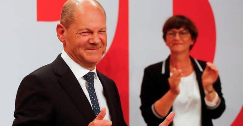 وقال مرشح الحزب الديمقراطي الاشتراكي لمنصب المستشار، أولاف شولتز، أمام أنصاره المبتهجين “نحن متقدمون في جميع استطلاعات الرأي“.