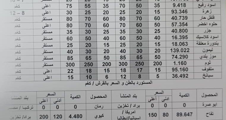 البندورة بـ15 قرش والخيار بـ90 في السوق المركزي اليوم