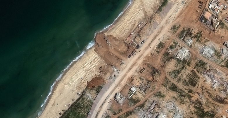 حرير – أظهرت صور التقطت عبر الأقمار الصناعية رصيفا قيد الإنشاء على شواطئ الساحل الجنوبي لمدينة غزة، وفق الإحداثيات التي نشرتها شركة ماكسار للتكنولوجيا.