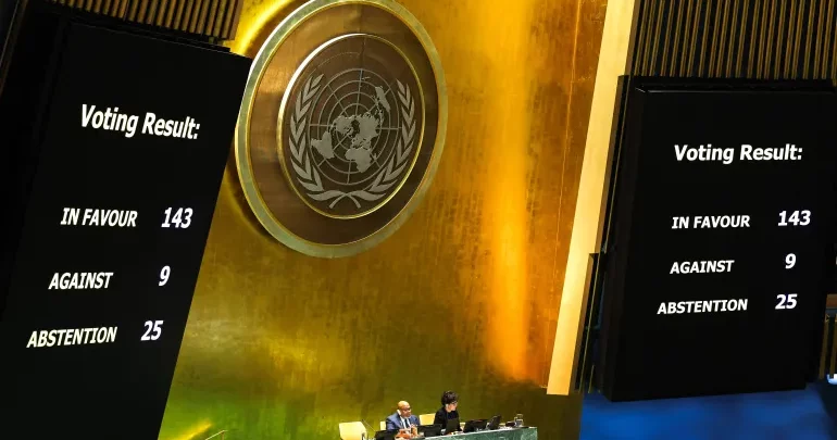 وقال الوزير عبر منصة إكس “سمعنا في التصويت صوت العالم يقول بشكل لا لبس فيه إن الوقت حان لتأخذ فلسطين مكانها الصحيح بين دول العالم”.