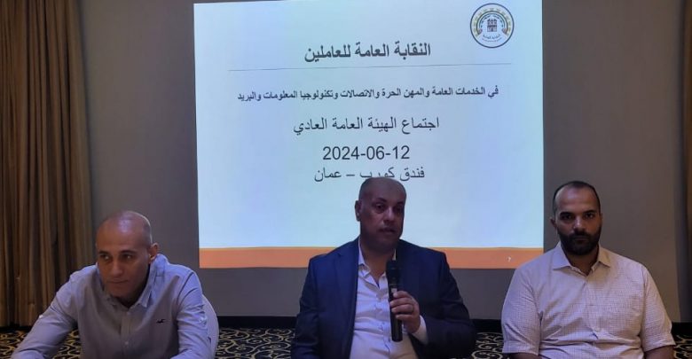 حرير – عقدت النقابة العامة للعاملين في الخدمات العامة والمهن الحرة والاتصالات وتكنولوجيا المعلومات اجتماع الهيئة العامة العادي، اليوم الثلاثاء، برئاسة رئيس النقابة خالد أبو مرجوب، وحضور أعضاء الهيئة الإدارية للنقابة، ومندوب الاتحاد العام لنقابات عمال الأردن محمد أبو لبة.