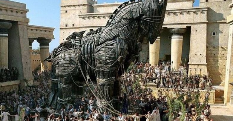 حرير- حاصر الإغريق مدينة طروادة لمدة عشر سنوات ، وفشلوا في دخولها بسبب حصونها المنيعة ، فأمر أوديسيوس العمال بصناعة حصان خشبي ضخم ، وتظاهر الإغريقيون بالانسحاب وتركوا الحصان أمام أسوار طروادة كنوع من الانسحاب والتسليم.
