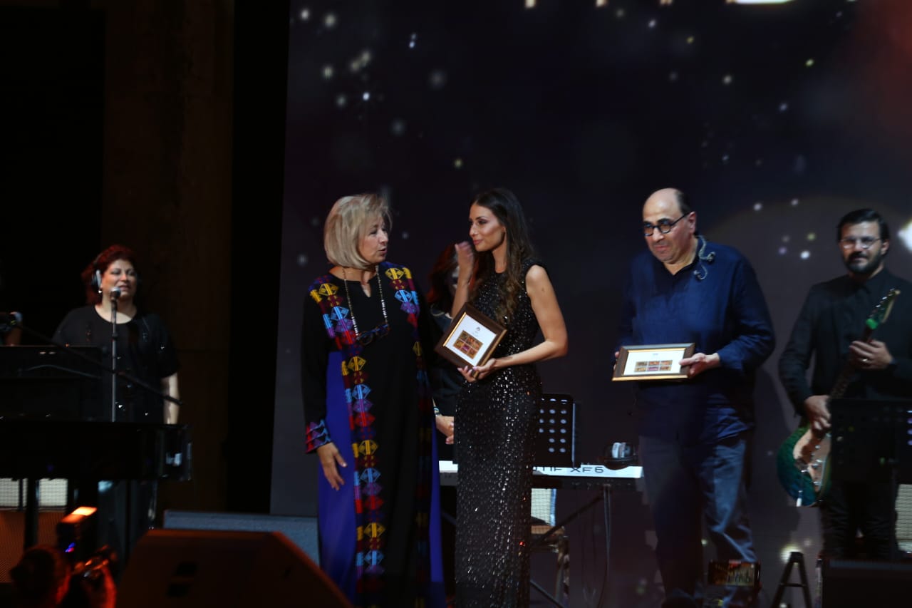 وبعد وصلتهاالفنية كرمت رئيسة اللجنة العليا لمهرجان جرش وزيرة الثقافة هيفاء النجار الفنانة طوجي والموسيقار الرحباني وشكرتهما على هذه الأمسية الفنية.