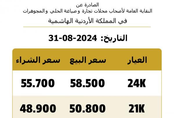 وبلغ سعر بيع غرام الذهب عيار 21 الاكثر طلبا لدى المواطنين 50.80 دينارا لغايات الشراء من محال الصاغة، مقابل 48.90 دينارا لجهة البيع.