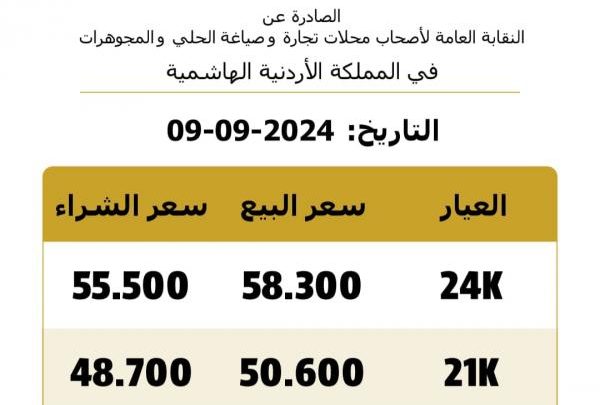 وبلغ سعر بيع جرام الذهب عيار 21 الاكثر طلبا لدى المواطنين 50.60 دينارا لغايات الشراء من محال الصاغة، مقابل 48.70 دينارا لجهة البيع.