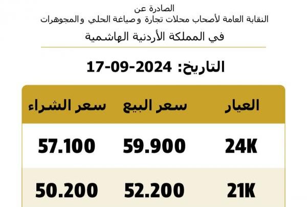 وبلغ سعر بيع غرام الذهب عيار 21 الاكثر طلبا لدى المواطنين 52.20 دينارا لغايات الشراء من محال الصاغة، مقابل 50.20 دينارا لجهة البيع.