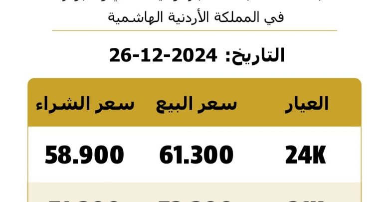 كما بلغ سعر بيع غرام الذهب من عيار 24 نحو 61.3 دينار، في حين بلغ سعر بيع الذهب من عيار 18 نحو 47.3 دينار.