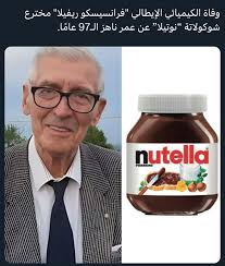 حرير- توفي الكيميائي الإيطالي فرانشيسكو ريفيلا، أحد أبرز العقول وراء اختراع شوكولاتة نوتيلا، الجمعة الماضي عن عمر 97 عاما، وفقا لوسائل إعلام إيطالية.