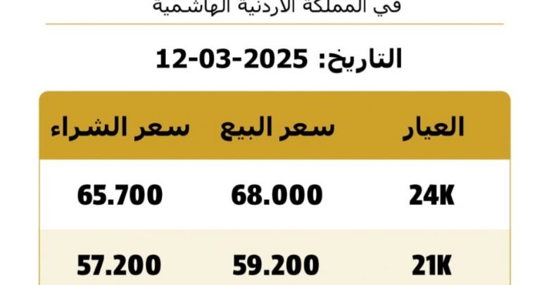 كم تبلغ أسعار الذهب في الأردن الأربعاء؟