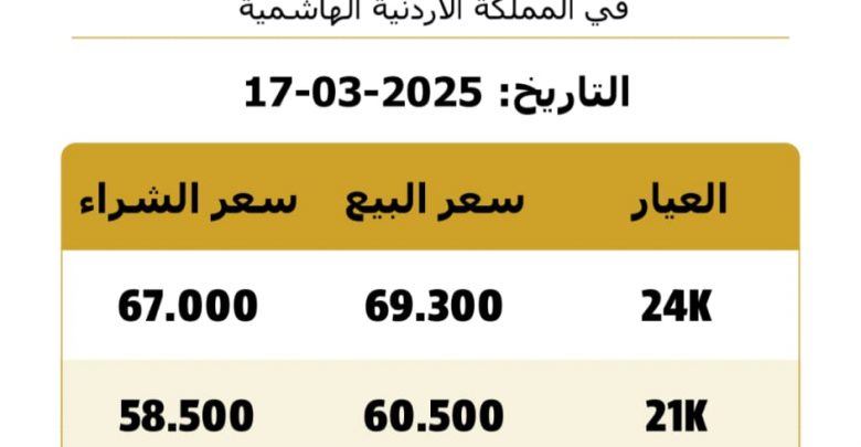 وبحسب التسعيرة اليومية، بلغ سعر بيع غرام الذهب عيار 21 عند 60.5 دينار لغايات البيع في محلات الصاغة، مقابل 58.5 دينار لجهة الشراء.