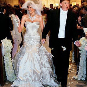 حرير- شوهد فستان زفاف ميلانيا ترامب الباذخ من كريستيان ديور، ومن تصميم جون غاليانو، والذي ارتدته في حفل زفافها على الرئيس دونالد ترامب عام ٢٠٠٥، معروض للبيع وبسعر صادم.
