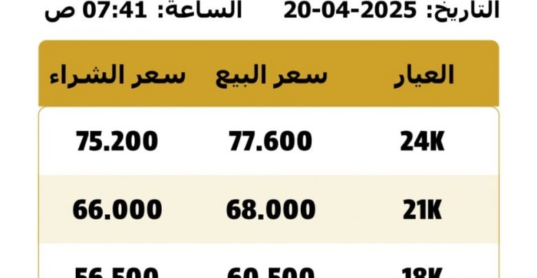 ووفقا للائحة الأسعار التي نشرتها النقابة العامة لأصحاب محالّ تجارة وصياغة الحلي والمجوهرات، فقد بلغت أسعار بيع الغرامات من الذهب عياري 24 و18 و14 في المحال 77.6 دينارا و60.5 دينارا و45.90 دينارا على التوالي.