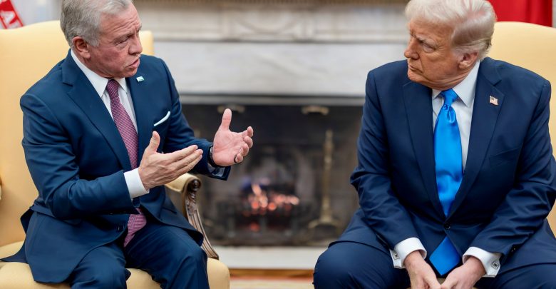 حرير- أكد جلالة الملك عبدالله الثاني خلال لقائه الرئيس الأمريكي دونالد ترمب في البيت الأبيض، أمس الثلاثاء، أنه سيضع مصلحة الأردن فوق كل اعتبار.