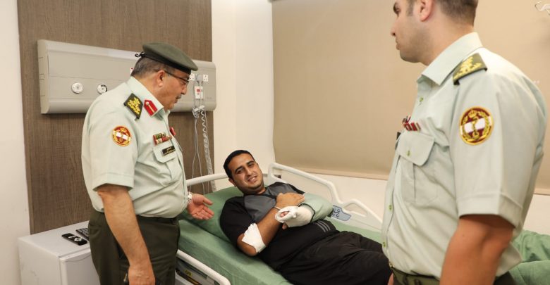 وقال مستشار الجراحة العامة العميد الطبيب سهم القسوس “إنه تم اخلاء المصاب، وسيتم تقييم حالته الصحية، بعد إجراء مختلف الفحوصات المخبرية والاشعاعية اللازمة، وادخاله إلى القسم المعني لمتابعة حالته الطبية”.