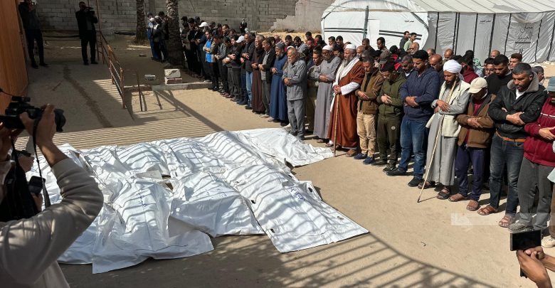 وأفاد الهلال باستشهاد 5 مواطنين وإصابة عدد آخر، جراء غارة إسرائيلية استهدفت خيمة تؤوي نازحين لعائلة أبو عرب في حي المجايدة بمواصي مدينة خانيونس جنوب قطاع غزة نقلوا إلى مستشفى ناصر في المدينة.
