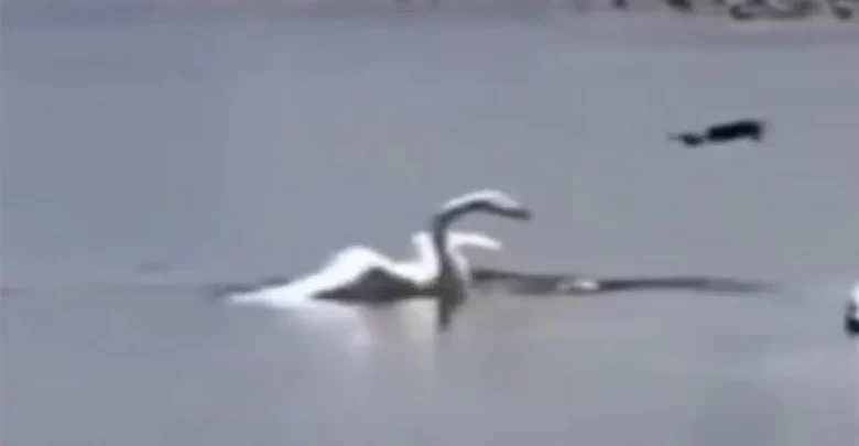 لكن يبدو أن إحدى البجعات لم تتحمل هذا الجوار، فأسقطت الطائرة المسيرة بضربات قوية من جناحيها.