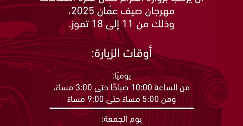 متحف السيارات الملكي يفتح أبوابه لزوار مهرجان “صيف عمان “