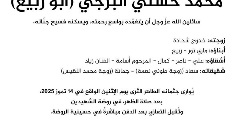 واكتفى النجم اللبناني بمشاركة متابعيه عبر خاصية “الستوريز” في “إنستغرام” بورقة النعوة التي ذكر فيها وفاة “المأسوف على شبابه محمد حسني البرجي (أبو ربيع)”، ودوّن أسماء شقيقاته وأشقّائه، ومن بينهم زياد. ولم يذكر زياد أي تفاصيل إضافية عن أسباب وفاة شقيقه.