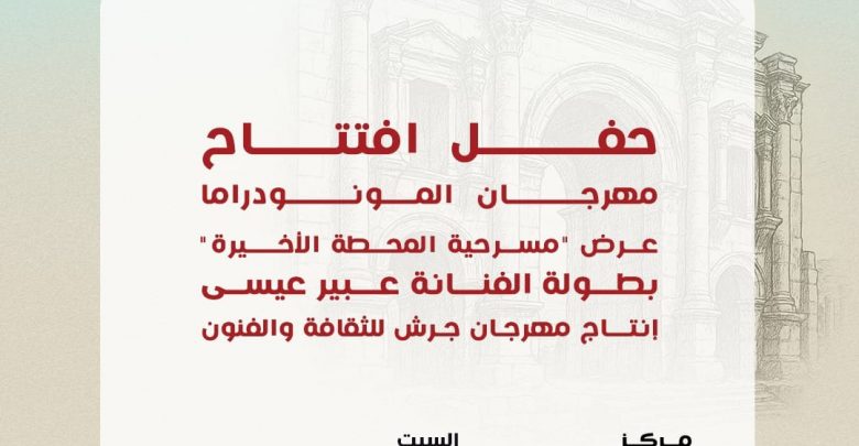 يقام عرض الافتتاح يوم 26 تموز على خشبة المركز الثقافي الملكي، وتقدّم خلاله عبير عيسى أداءً منفردًا في مسرحية “المحطة الأخيرة”، التي تسرد بأسلوب تعبيري مؤثّر قصة وطنية مشبعة بالعاطفة والانتماء، عبر شخصية واحدة تواجه الحياة والجمهور معًا، في صيغة درامية مكثفة.