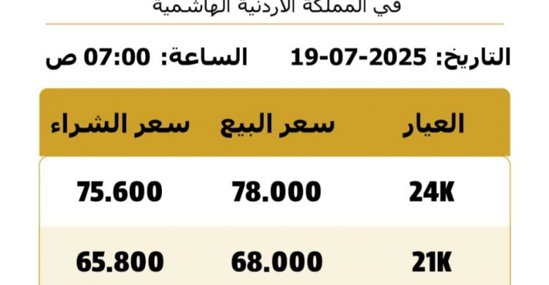 ارتفاع ملحوظ على أسعار الذهب في الاردن السبت