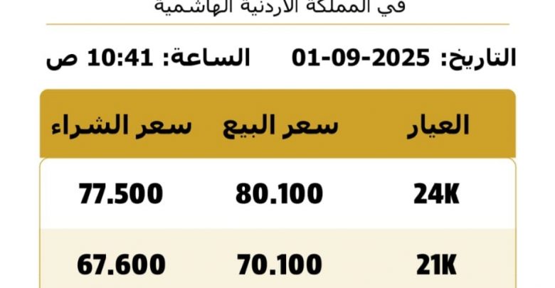 وبلغ سعر بيع الغرام الواحد من الذهب عيارات 24 و18 و14، لغايات الشراء من محلات الصاغة، عند 80.10 و62.50 و47.30 دينارًا على التوالي.