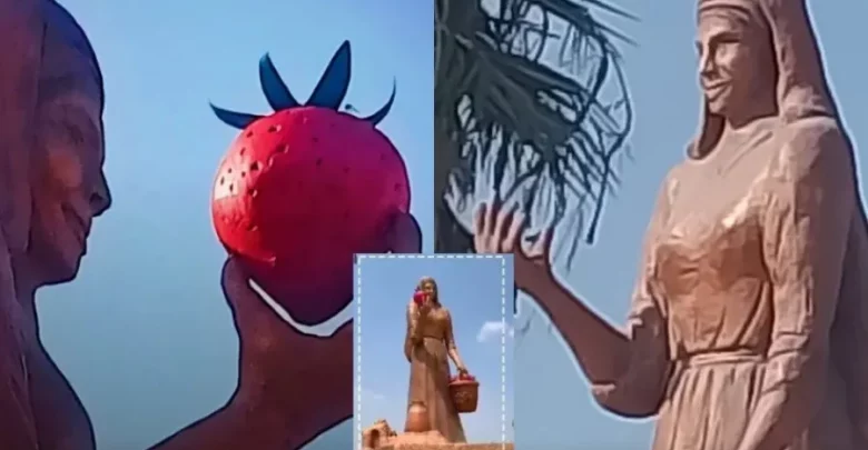حادثة غريبة .. اختفاء “ثمرة” من يد تمثال “ملكة الفراولة” المصرية يثير جدلاً واسعاً