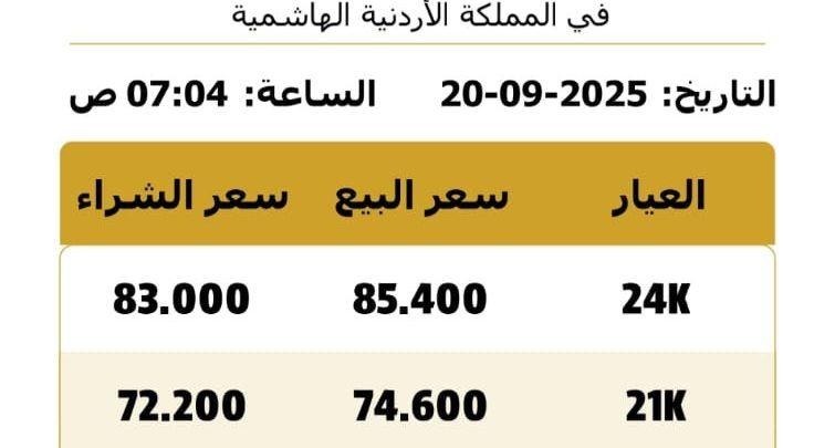 وحسب النشرة اليومية التي أصدرتها النقابة العامة لأصحاب محلات تجارة وصياغة الحلي والمجوهرات، بلغ سعر الغرام الواحد من الذهب لعيارات 24 و18 و14 لغايات البيع من محلات الصاغة 85.40 دينارا و 66 دينارا، و 50.30 دينارا