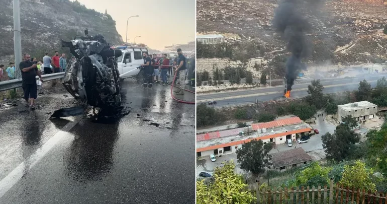 وقال مصدر أمني لبناني إن المسيرة أطلقت 3 صواريخ باتجاه السيارة مما أدى إلى احتراقها بالكامل ووقوع إصابات.