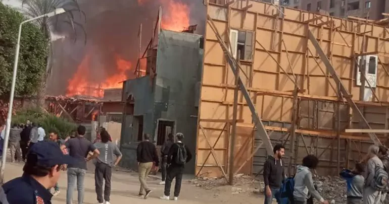 حرير- اندلع حريق كبير، مساء الجمعة، داخل الديكور الرئيسي لمسلسل “الكينج” في أستوديو مصر بمنطقة الهرم، ما أدى إلى تدمير أجزاء واسعة من ديكور “الحارة” الخشبي، دون وقوع أي إصابات بشرية.