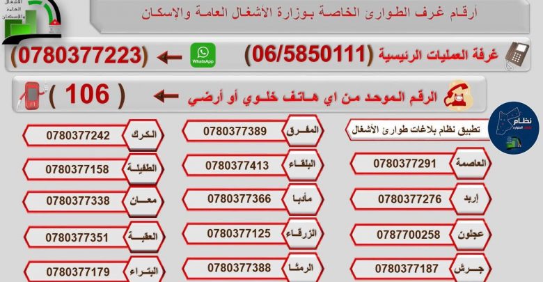 وقالت الوزارة في بيان اليوم السبت، إن 15 غرفة عمليات في مديريات الأشغال تستقبل بلاغات المواطنين على مدار الساعة لضمان سرعة الاستجابة ومعالجة أي طارئ.