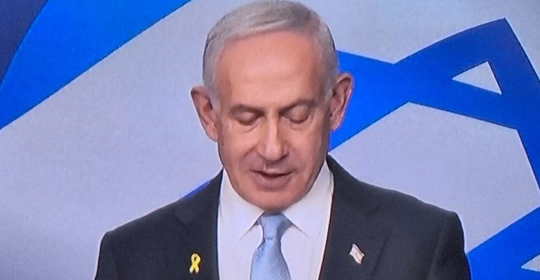 – نتنياهو يكرر سرديته حول إنهاء حكم حماس ومصادرة سلاحها ، وحول انتشار معاداة السامية في كل مكان متناسيا الإبادة التي اقترفها ضد الفلسطينيين ودفعت المجتمع الدولي للوقوف ضد العنف الإسرائيلي الذي يسميه نتنياهو معاداة للسامية .