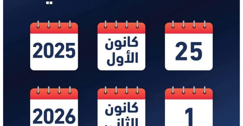 عطله رسميه 25 كانون اول 2025 و1 كانون ثاني 2026