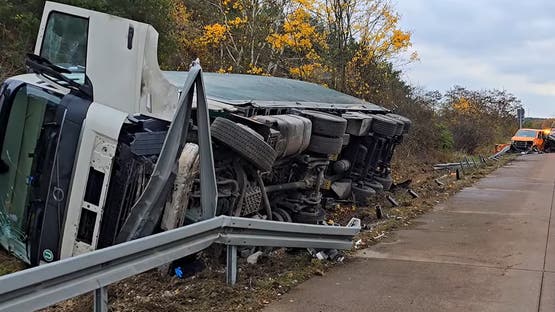 وانطلقت الدجاجات على أحد الطرق السريعة في ألمانيا بعد حادث انقلاب الشاحنة في منطقة هارتس بولاية سكسونيا-أنهالت.
