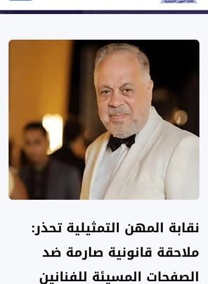 حرير- أصدرت نقابة المهن التمثيلية في مصر برئاسة الفنان أشرف زكي بيانا عاجلا حذرت فيه من انتشار صفحات على مواقع التواصل الاجتماعي تقوم بتشويه سمعة مصر وفنانيها.