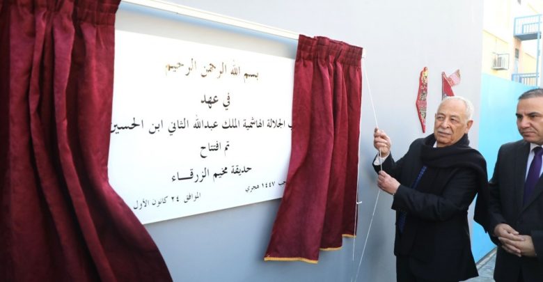 حرير- افتتح رئيس الديوان الملكي الهاشمي يوسف حسن العيسوي، رئيس لجنة متابعة تنفيذ مبادرات جلالة الملك، اليوم الأربعاء، في محافظة الزرقاء، حديقة عامة في مخيم الزرقاء، التي وجه جلالة الملك عبدالله الثاني بإنشائها عقب لقائه مع وجهاء المخيمات، ضمن مجموعة من المشاريع في جميع المخيمات من خلال المبادرات الملكية.