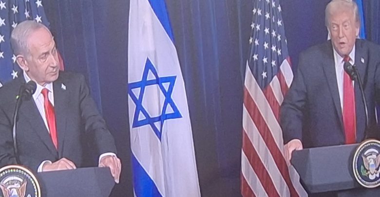 في المؤتمر الصحفي الذي تلا إجتماع ترامب مع نتنياهو في فلوريدا الأمريكية .