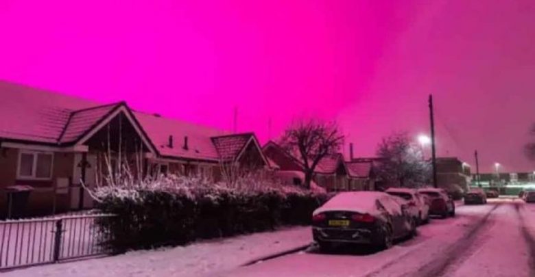 وسرعان ما تداول البريطانيون العديد من الصور ومقاطع الفيديو التي توثق اللون الوردي المرعب الذي غطى سماء مدينة بيرمنغهام الواقعة إلى الشمال من العاصمة البريطانية لندن، وسط تساؤلات عن سبب الظاهرة، وما إذا كانت مرتبطة بالعاصفة الثلجية التي تضرب بريطانيا، قبل أن يتبين سريعاً بأن الأمر لا يعدو كونه أضواء صناعية من فعل الإنسان.