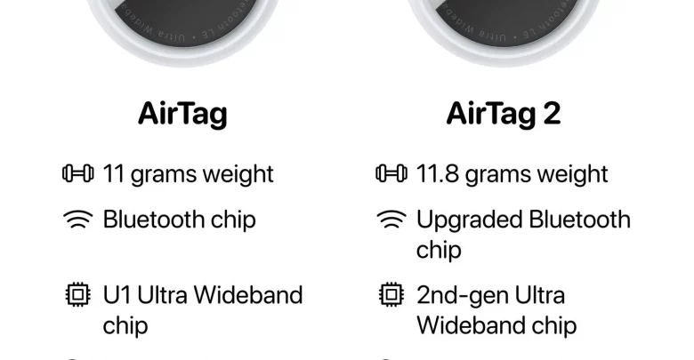 بينما يحتفظ كل من AirTag 1 وAirTag 2 بنفس التصميم الخارجي والسعر وعمر البطارية الطويل، فإن AirTag 2 يتفوق بوضوح في الجانب التقني عبر: