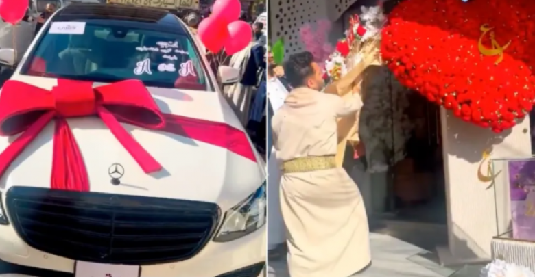 حرير- أشعل حفل خطوبة فخم لشاب يمني مغترب جدلا واسعا على منصات التواصل الاجتماعي، بعد أن تجاوزت تكلفته بحسب ما تم تداوله 200 ألف دولار أمريكي، تضمنت إهداء خطيبته سيارة فارهة.
