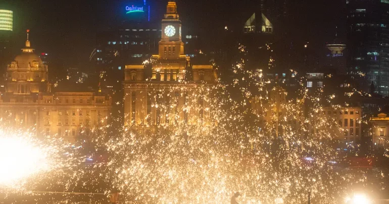 وفي مقطع فيديو بثته وكالة أنباء الصين الجديدة (شينخوا) على فيسبوك، مساء الثلاثاء، يظهر قاذفو الحديد المنصهر وهم يلوحون بأدواتهم في الهواء على ضفاف نهر هوانغبو في منطقة البوند الشهيرة، قبل أن تنفجر كتل الحديد المتوهج في السماء لتتشكل آلاف الشرارات الذهبية التي تهطل مثل شلال من الضوء فوق الواجهة النهرية للمدينة.