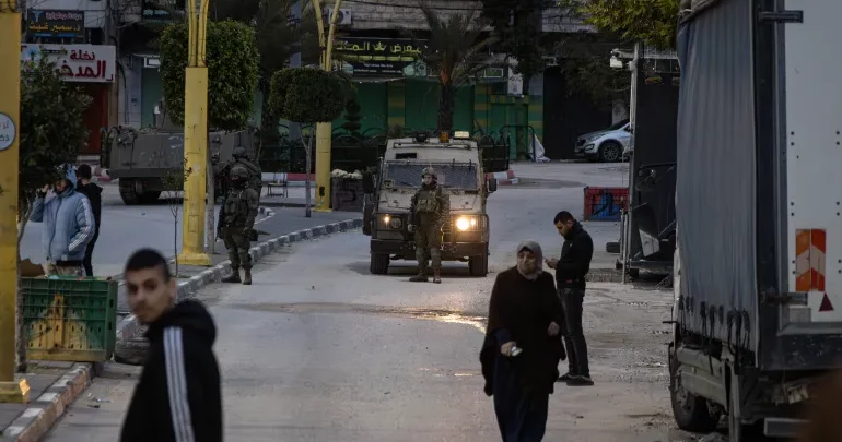 وفي سياق متصل، اقتحمت قوات الاحتلال قرية المغير شرق رام الله وسط انتشار عسكري، ونصبت حاجزا عسكريا عند المدخل الغربي للبلدة، حيث أوقفت مركبات وقامت بتفتيشها، ما أدى إلى أزمة مرورية.