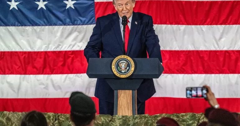 وقال ترمب للجنود في قاعدة فورت براغ العسكرية بولاية كارولاينا الشمالية: “حتى هم يتحدثون عن “المربك” لأنهم لم يتمكنوا من إطلاق شيء”، في إشارة إلى تعطيل جزء كبير من الأنظمة الدفاعية الفنزويلية خلال العملية العسكرية في فنزويلا يوم 3 يناير/كانون الثاني، التي اعتُقل خلالها مادورو وزوجته ونقلا إلى الولايات المتحدة لمحاكمتهما بتهم مرتبطة بالمخدرات.