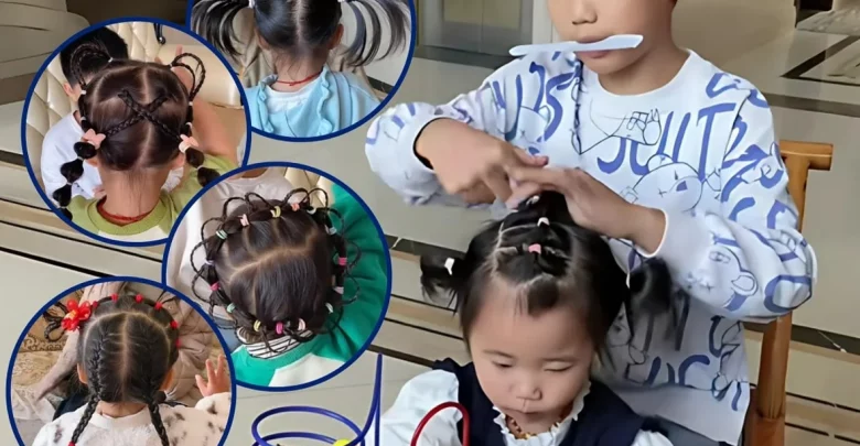 طفل صينى يبتكر أكثر من 300 تسريحة شعر لأخته الصغيرة