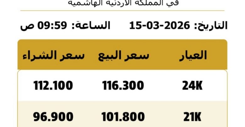 أسعار الذهب في الأردن اليوم الأحد