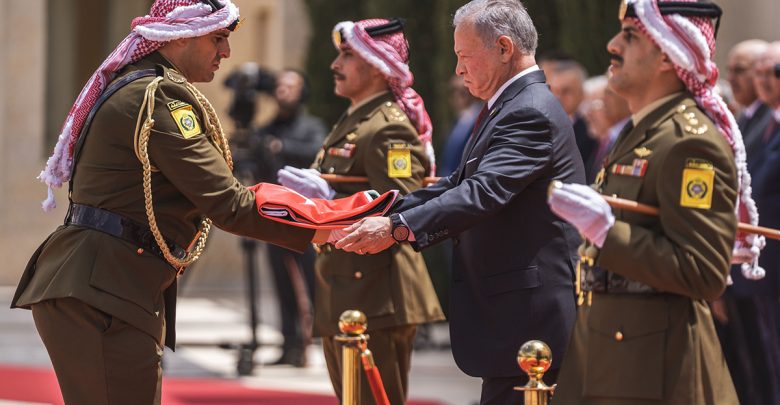 الملك يشهد مراسم رفع العلم بمناسبة اليوم الوطني للعلم الأردني