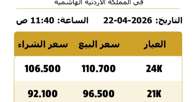 وبلغ سعر غرام الذهب عيار 21 الأكثر تداولا بين المواطنين 96.5 دينارا.