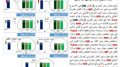 حرير- ارتفع معدل سعر بنزين اوكتان 95 و 90 وانخفض والديزل والكاز خلال الأسبوع الثالث من آب الحالي، مقارنة مع…