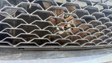 قط بري يعلق في مقدمة سيارة .. ورجال الإطفاء يتدخلون