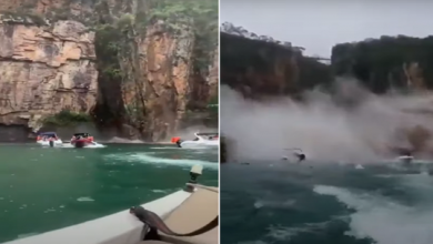 حرير _ أظهرت لقطات جديدة لحظة انهيار صخرة عملاقة على مراكب السياح البحرية في البرازيل، ما أدى لى مقتل 10…